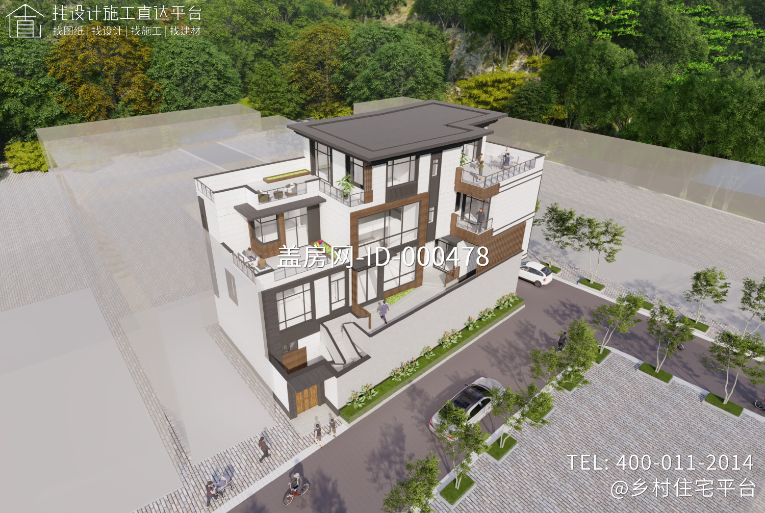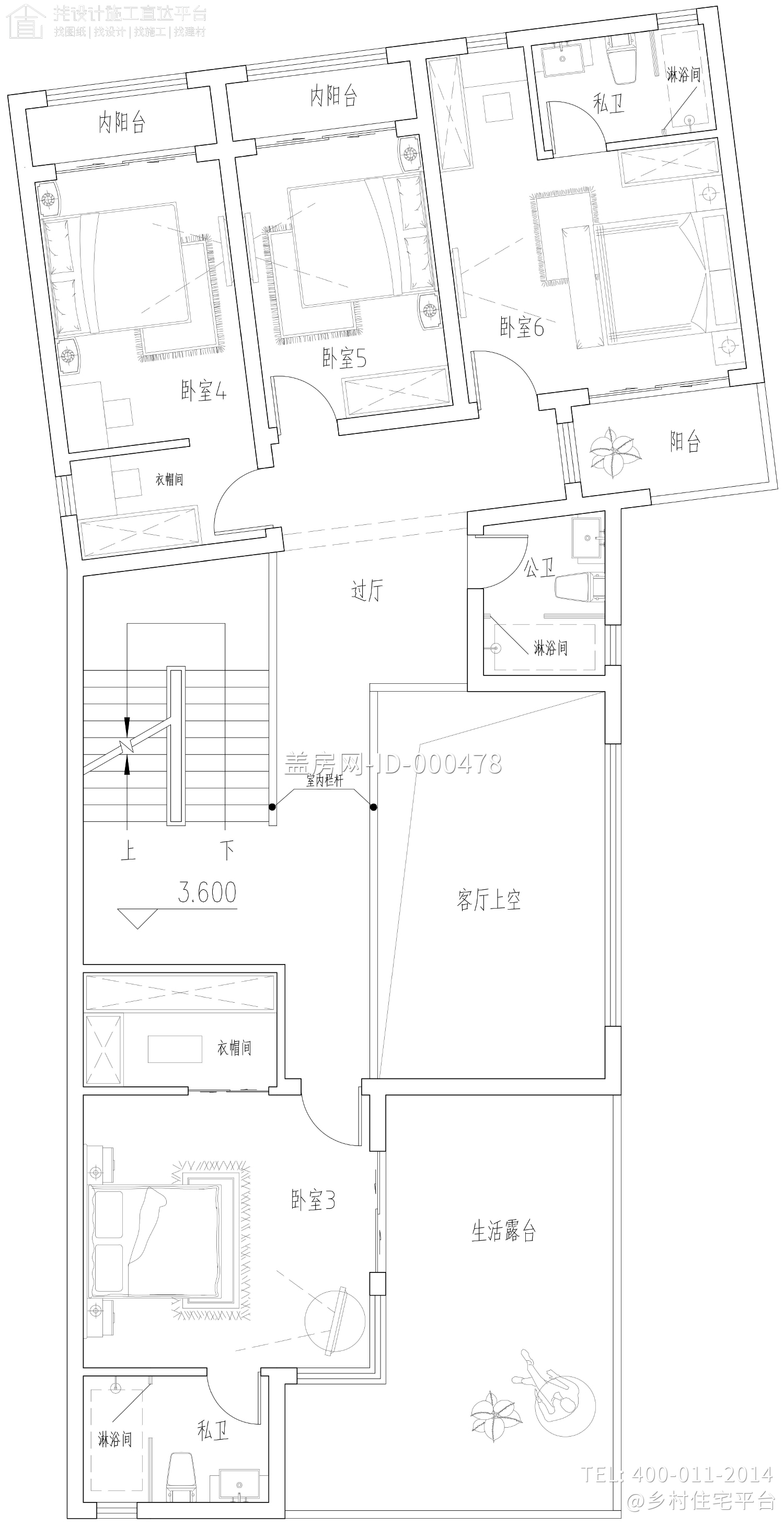 - 有露台,平屋顶,带商铺,贴邻居,有庭院,三合院,北入口,西楼梯,5开间,6-7卧室